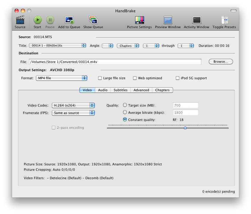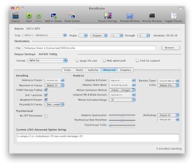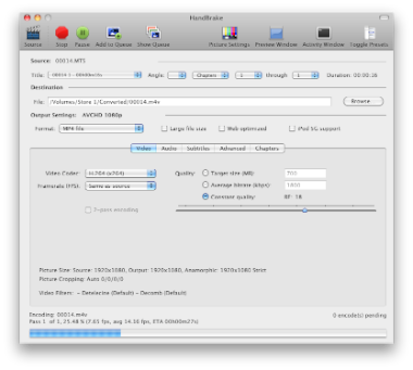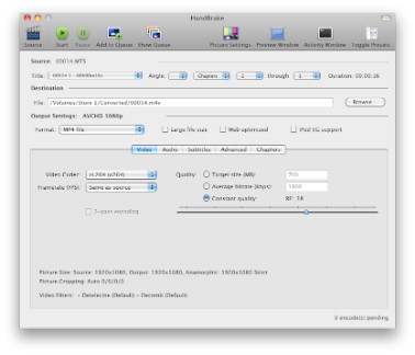 Press the start button, and let Handbrake convert that MTS to M4V for you.