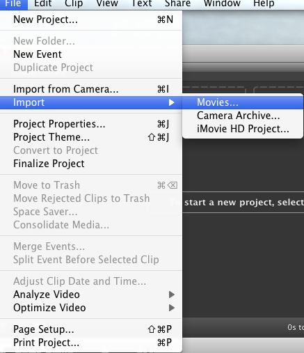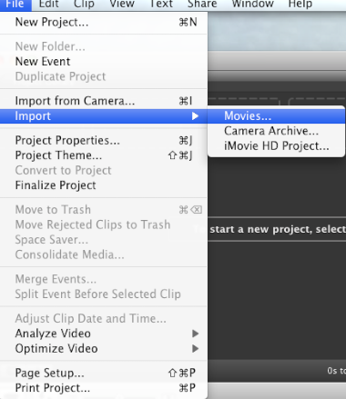 Step 2: Open iMovie and import the movie