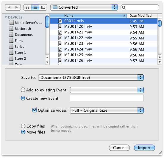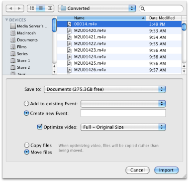 Import the M4V you just created with Handbrake to iMovie. Don’t forget to check the “Optimize video: Full – Original Size” option. iMovie will import the M4V file and convert the same into MOV for easier editing. If you didn’t choose the Optimize video option, iMovie would still import the video, but any attempts to edit it, will cause your system to lag. I’ve seen this happen on Core i7s as well.