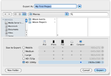 From Share, choose Export Movie, -> HD 1080p, press Export and Bob’s your uncle.