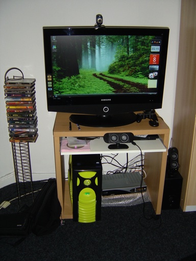 The solution was easy. Since I had retired the server from existance after the famous HDD crash of 18-06, it was lying in state, in mourning if you will. I decided to bring back the PIV system to life, but instead of hooking it up to the spare LCD screen I have, I decided to hook it up to my LCD TV, 32" of screen real-estate! It took me most of Saturday, but I now have a media center PC. The OS of choice, sorry for this, but – Vista! I tried XP, but it just wouldn’t work! Vista on the other hand looks gorgeous on my LCD TV! As if it were made for that! Kudos.