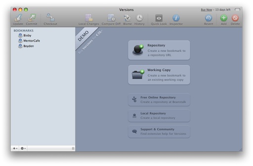 For my needs though, I chose Versions, a commerical SVN frontend that makes setting up multiple SVN repositories easy and quite straightforward. In my case, I set up a local repository, pointing the location to a folder on my RAID drive. And that was it!