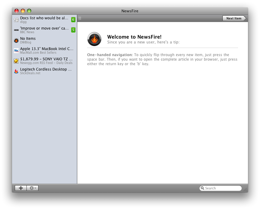 I have been trying of late to replace Firefox and/or Mail.app as my feed aggregators, with little luck. So desperate was I, that I pretty much resolved to program one myself. But before I could start, I decided to give it one more shot & search the interwebs a bit more. My luck indeed – by sheer chance I came upon NewsFire. This remarkable app does it all for me, aggregating the feeds I usually subscribe to (BBC, CBC, Digg, Newegg and the like), and allows me to create views on the same – I can for instance keep an eye out for deals on MacBooks by simply defining a search term which creates a separate list. NewsFire features the option to allow Spotlight to index the content, which is such a time saver for me. The clincher of course was the fact that NewsFire is free – developed by the same team that brought us – Acquisition and XTorrent.