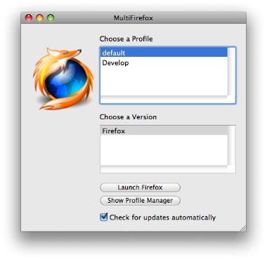 I found myself needing to check on code written by others, to inspect the properties and inline styles, not to mention AJAX requests and the like. But I didn’t want to encumber my browser with plugins I really don’t need on a day to day basis. The solution was to create a separate developer profile for my Firefox. Of course on many platforms you cannot have multiple versions of Firefox installed at the same time. It was possible however to create multiple profiles for the same version via the profile manager for Firefox. You can launch it through the terminal.app by typing