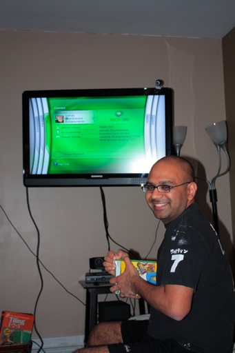 But to the topic at hand! Rissa’s mom, dad and grandparents came to our place to celebrate with us, along with Jen, Sam and the kids via Webcam from Indiana. Just so touching indeed, and that in itself was a great gift – the gift of family. The kids seemed extra excited! As I opened my gifts, there was an air of excitement about – Rissa’s dad seemed rather overcome by it and apparently went out for a breather – but soon came right back in, with a HUGE bag. My eyes widened as I opened the bag to see the oh so familiar green box with the X logo on it. Could NOT believe it – my first instinct – am I being Punk’d much like that kid who thought he got a Wii but found out it was a box full of socks. But no, it was real, it is mine! I was gifted a console, an XBox at that.