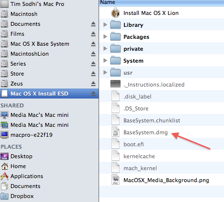 - Find BaseSystem.dmg amongst the hidden files in the InstallESD.dmg. I usually use Pathfinder to view Hidden files.