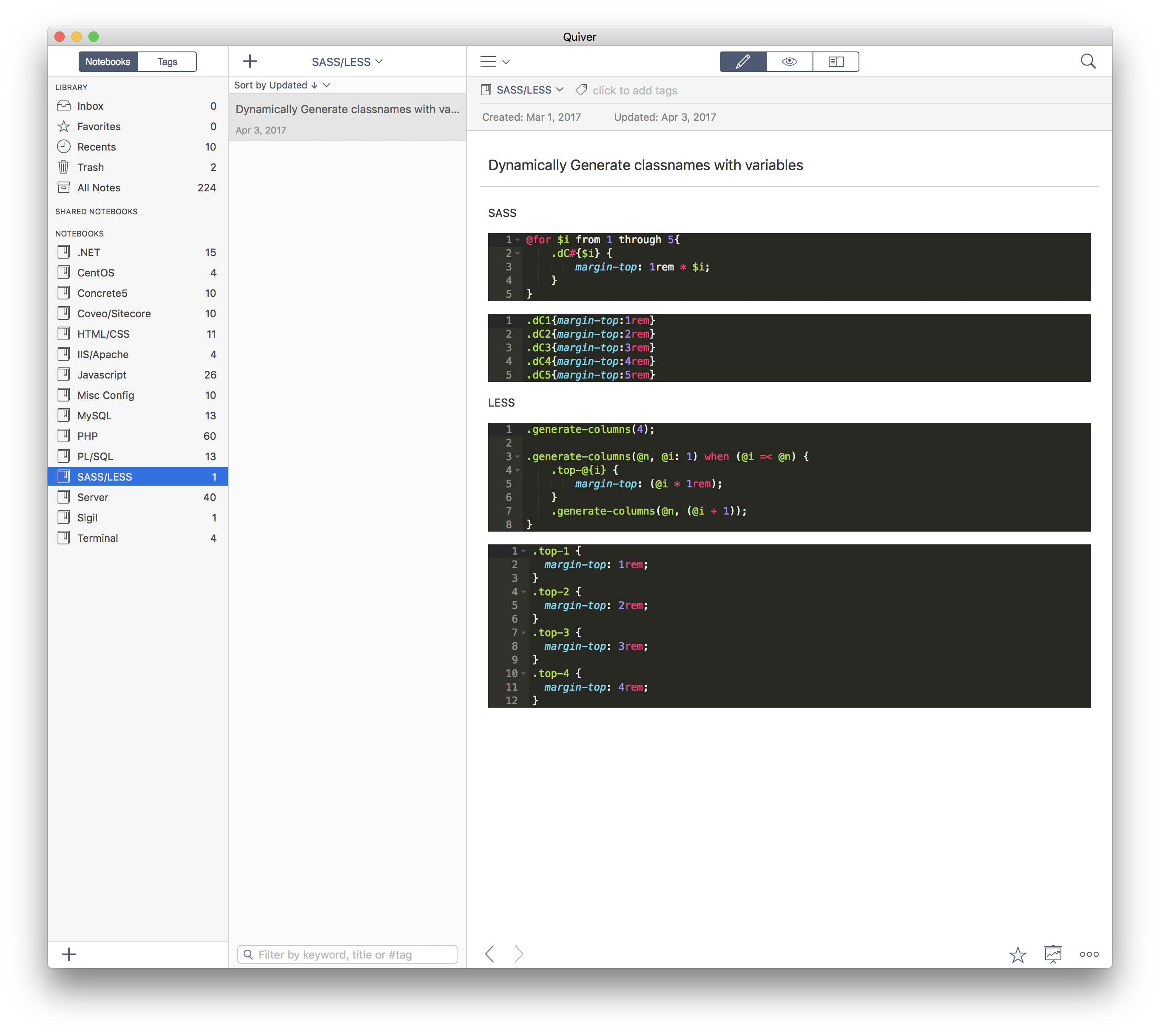 Speaking of documentation – I would like to give a big shoutout to this amazing code/snippets repository App that I am using on all my devices. Say hello to Quiver by HappenApps. Developed by Yaogang Lian (who is an amazingly responsive developer), this app has become a part and parcel of my daily coding routine since they deprecated the Snippets app. Give it a shot!